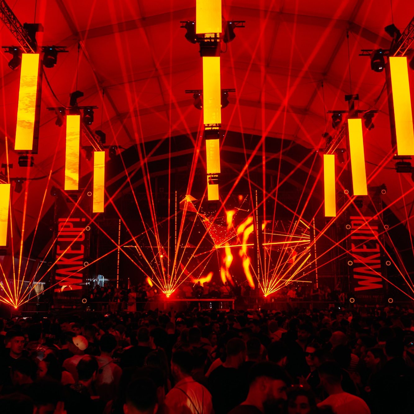 Área 51 Producciones se encarga de transformar el evento Wake Up en un espectáculo audiovisual completo. Desarrolla instalación y gestión de sonido, iluminación y video para que el evento tenga una experiencia visual y sonora impecable